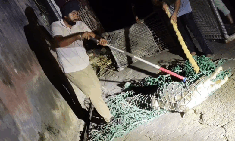 जानकारी के मुताबिक रविवार देर रात अचानक एक विशालकाय मगरमच्छ खेड़ी कला गांव में एक घर में घुस गया। जिसे देख परिवार के होश फाख्ता हो गए। परिवार के लोग चीखते हुए बाहर की तरफ भागे। चीख सुनकर मौके पर लोगों की भीड़ जमा हो गई। मगरमच्छ को देखने के लिए ग्रामीणों की भीड़ उमड़ पड़ी। इस बीच इसकी सूचना वन विभाग को दी गई। सूचना मिलते ही वनकर्मी गुरजंट सिंह समेत वन विभाग की टीम मौके पर पहुंची। टीम ने कड़ी मशक्कत के बाद मगरमच्छ को सुरक्षित रेस्क्यू किया। इसके बाद उसे पकड़कर सुरक्षित गंगा नदी में छोड़ा गया। गनीमत रही कि मगरमच्छ के घर में घुसने की इस घटना में कोई जनहानि नहीं हुई। वहीं, मगरमच्छ के पकड़े जाने पर ग्रामीणों ने राहत की सांस ली है।