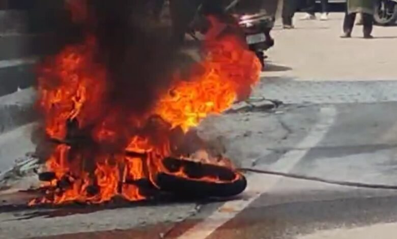 चलती बाइक बनी आग का गोला, सवार पति-पत्नी ने कूदकर बचाई जान