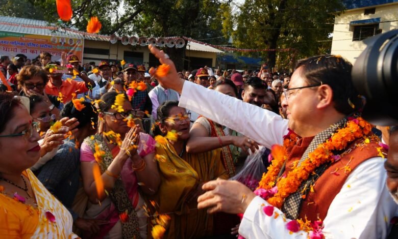 मुख्यमंत्री पुष्कर सिंह धामी के खटीमा पहुँचने पर हुआ भव्य स्वागत
