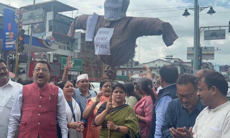 जिला मुख्यालयों पर कांग्रेस ने किया सरकार के खिलाफ प्रदर्शन, फूंका पुतला