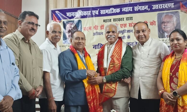 देहरादून। मानवाधिकार एवं सामाजिक न्याय संगठन द्वारा पुरुकुल रोड स्थित हेरिटेज ग्रीन में पूर्व जस्टिस राजेश टंडन के कार्यालय पर भारत सरकार ने पद्मश्री से सम्मानित प्रसिद्ध अस्थि रोग विशेषज्ञ डॉ. बी.के.एस. संजय को अखिल भारतीय आयुर्विज्ञान संस्थान (एम्स), गुवाहाटी का अध्यक्ष नामित किये जाने पर संगठन द्वारा स्वागत एवं सम्मान किया गया।