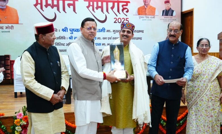 देहरादून। मुख्यमंत्री पुष्कर सिंह धामी ने मुख्य सेवक सदन, मुख्यमंत्री आवास में उत्तराखंड भाषा संस्थान द्वारा आयोजित उत्तराखंड साहित्य गौरव सम्मान समारोह-2025 में उत्तराखंड के सर्वोच्च साहित्यिक सम्मान “उत्तराखंड साहित्य भूषण सम्मान” से डॉ. जितेन ठाकुर को सम्मानित किया। इसके साथ मुख्यमंत्री ने डॉ. बुद्धिनाथ मिश्र, श्याम सिंह कुटौला, डॉ. प्रीतम सिंह, केसर सिंह राय एवं अताए साबिर अफजल मंगलौरी को “उत्तराखंड दीर्घकालीन उत्कृष्ट साहित्य सृजन पुरस्कार” से सम्मानित किया गया।