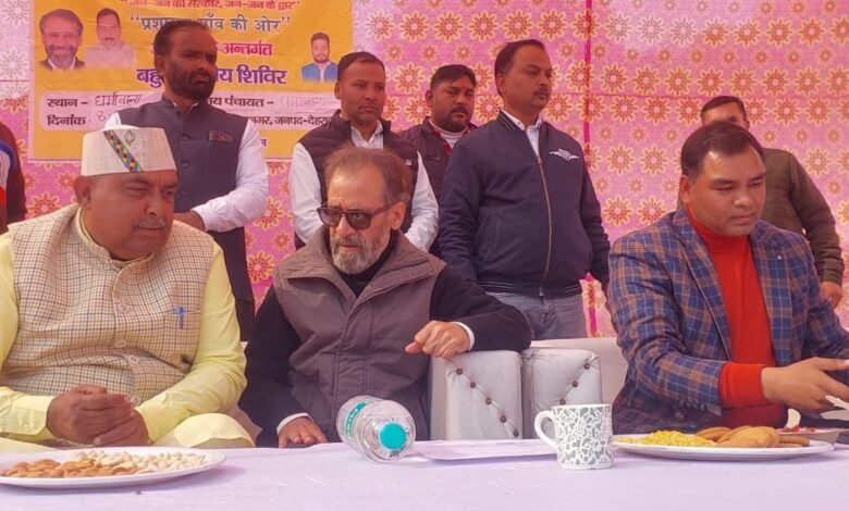 देहरादून। प्रदेश सरकार की महत्वाकांक्षी पहल ‘जन-जन की सरकार, जन-जन के द्वार, प्रशासन गांव की ओर’ अभियान के तहत गुरुवार को विकासनगर ब्लॉक के राजकीय प्राथमिक विद्यालय धर्मावाला में उप जिलाधिकारी विनोद कुमार की अध्यक्षता में बहुउद्देशीय शिविर आयोजित किया गया। शिविर में ग्रामीणों की समस्याओं का निस्तारण किया गया और विभिन्न विभागों की योजनाओं के माध्यम से 1775 लोगों को लाभ प्रदान किया गया। इस अवसर पर विधायक मुन्ना सिंह चौहान, विधायक सहदेव पुण्डीर, राज्य मंत्री श्याम अग्रवाल सहित अन्य जनप्रतिनिधि भी उपस्थित थे।