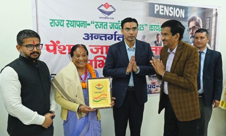 देहरादून। जिलाधिकारी सविन बसंल ने राज्य स्थापना की रजत जयंती पर 25 नवंबर,2025 को मुख्य कोषागार देहरादून में पेंशन जागरूकता एवं निःशुल्क चिकित्सा शिविर का शुभारंभ करते हुए राज्य आंदोलनकारी पेंशनरों को सम्मानित किया। इस मौके पर जिलाधिकारी ने मुख्य कोषागार में पेंशनरों की सुविधा के लिए जिला प्लान से 25 लाख लागत में नवनिर्मित ‘‘आरोहण’’ सभागार का लोकापर्ण भी किया और मुख्य कोषागार कार्यालय को 10 नए कम्प्यूटर देने की स्वीकृति भी प्रदान की।
