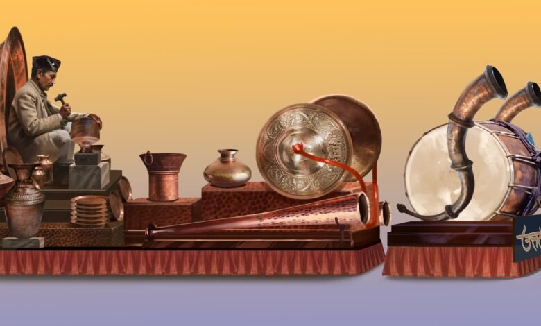 ट्रेलर सेक्शन के पहले भाग में तांबे के मंजीरे की एक बड़ी मूर्ति दिखायी गई है, जो तांबे की कला की बारीकियों को विस्तार से उजागर करती है। बीच का सेक्शन खूबसूरती से बनाए गए तांबे के बर्तन जैसे गागर, सुरही, कुण्डी को दर्शाया गया है, जो उत्तराखण्ड के पारंपरिक घरेलू जीवन के आवश्यक तत्व हैं। इस सेक्शन के नीचे, साइड पैनल पारंपरिक वाद्ययंत्र भोंकोर के प्रमुख चित्रणों से सजाए गए हैं, जो सांस्कृतिक कहानी को और समृद्ध करते हैं।