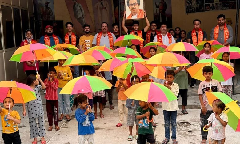 शिव सेना पक्ष प्रमुख का जन्मदिन मनाया, स्कूली बच्चो को छाते वितरित किए