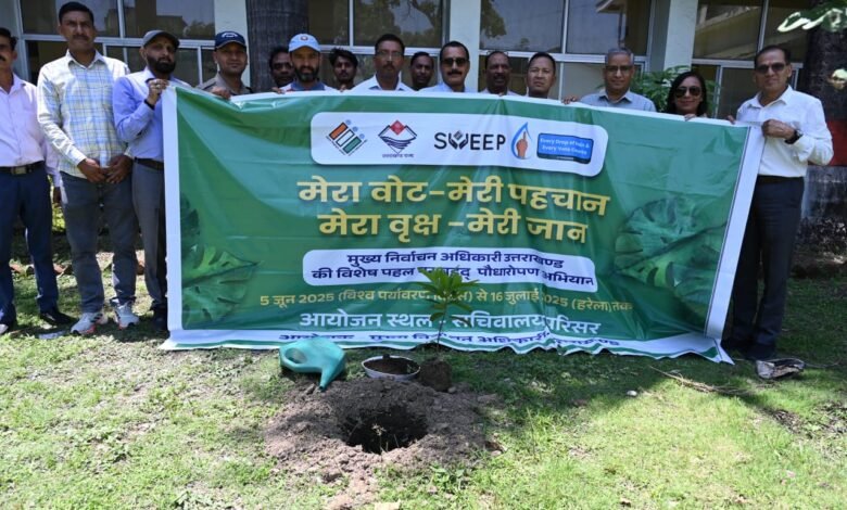 देहरादून। मुख्य निर्वाचन अधिकारी डॉ बी.वी.आर.सी. पुरुषोत्तम के निर्देश पर प्रदेश भर में विश्व पर्यावरण दिवस से वृहद पौधारोपण एवं मतदाता जागरुकता अभियान की शुरुआत हुई। सभी जनपदों में जिलाधिकारी जिला निर्वाचन अधिकारी, मुख्य विकास अधिकारी नोडल स्वीप सहित अन्य जिला स्तरीय अधिकारी एवं पोलिंग बूथों पर बीएलओ की अगुवाई में पौधारोपण किया गया। इस अवसर पर मतदान की शपथ लेने के साथ ही सभी ने अपने पौधे की सुरक्षा एवं देखभाल की शपथ भी ली। अभियान के शुभारंभ पर प्रदेशभर में लगभग 16 हजार पौधे लगाए गए, वहीं हरेला पर्व तक प्रदेश के सभी पोलिंग बूथों सहित अन्य सरकारी भवनों में 2 लाख पौधे लगाने का लक्ष्य रखा गया है।
