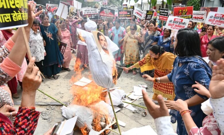 मातृशक्ति ने कांग्रेस एवं उनके सहयोगी दलों का पुतला दहन कर जताया आक्रोश